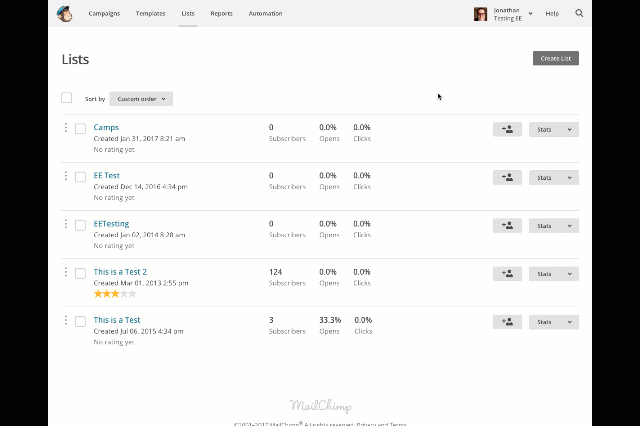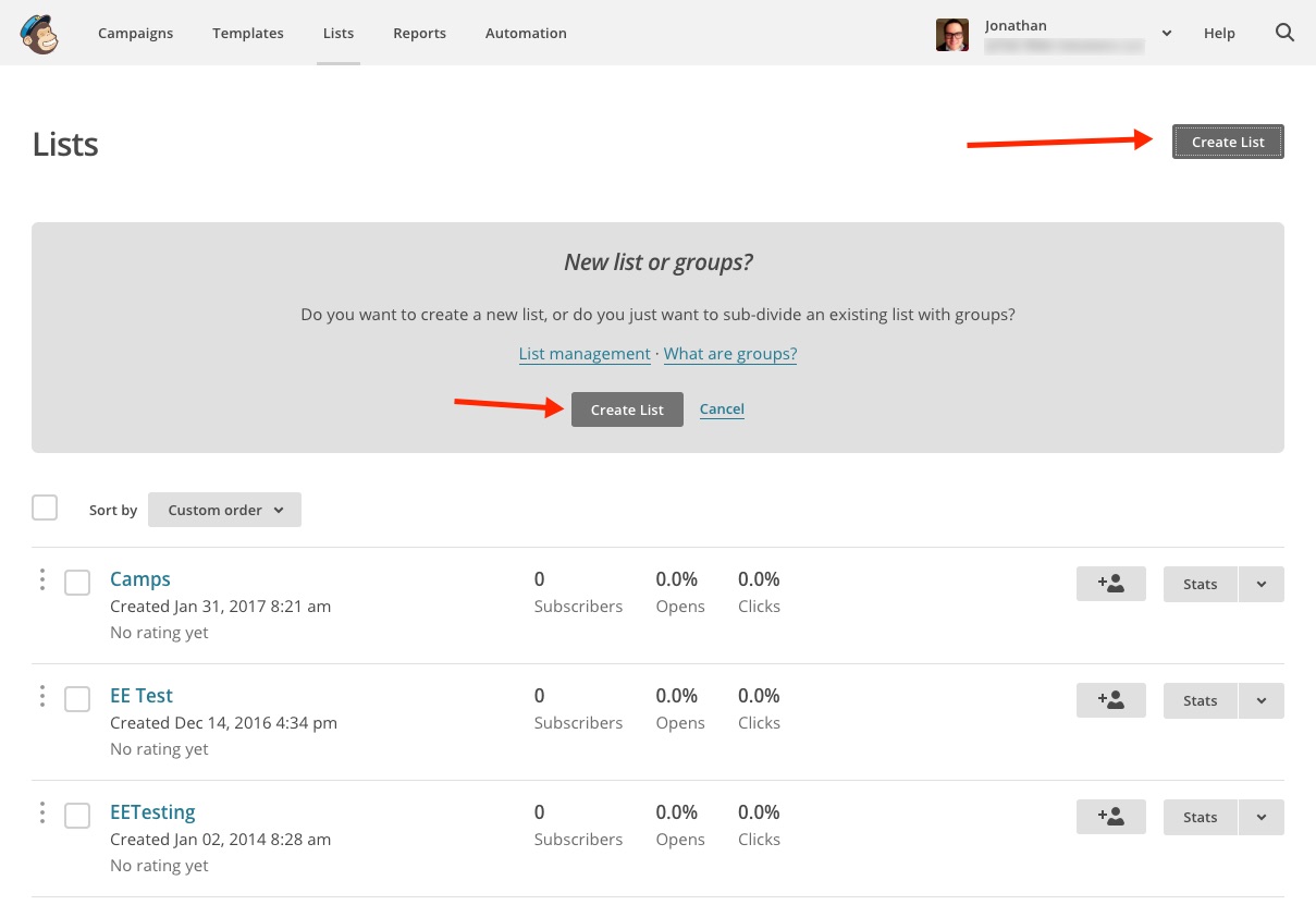 Creating MailChimp Lists