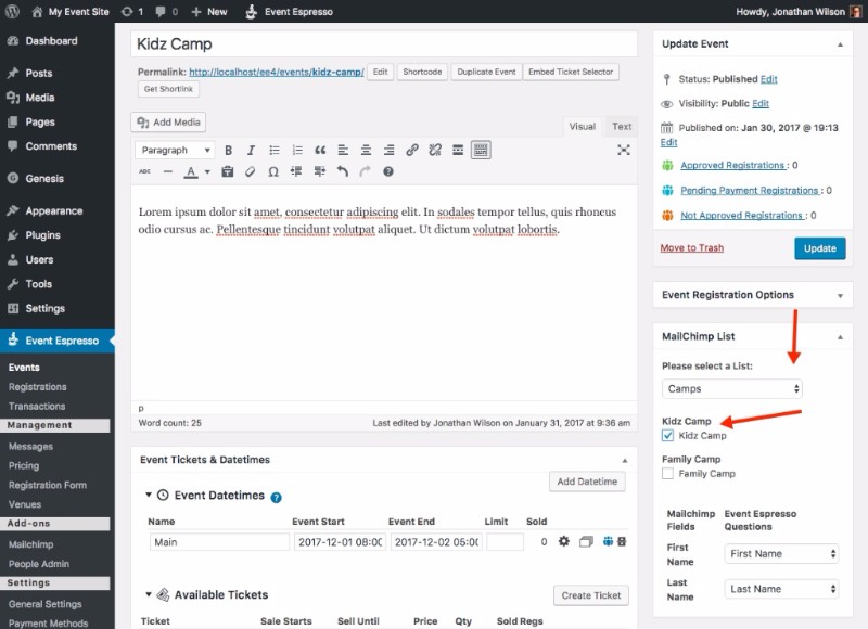 Use the Event Espresso MailChimp Add-on to Automate Sending Messages to Attendees