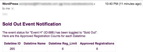 Going forward, whenever an event sells out, the event manager will receive an email about the sold out event. Here’s an example: