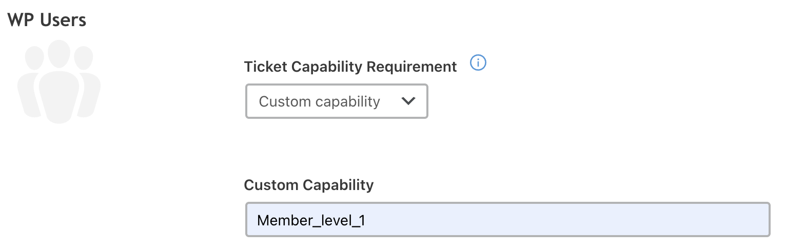 Creating these type of restrictions utilizes the Roles and Capabilities feature of WordPress. In this field, you indicate the capability that a visitor must have as a part of their user profile when logged in and viewing the ticket options. For example, if you have the s2Member® plugin installed, and you input the “access_s2member_level1” into this field, then the visitor must be logged in and have the “s2member_level1” (or greater) role assigned to their user.