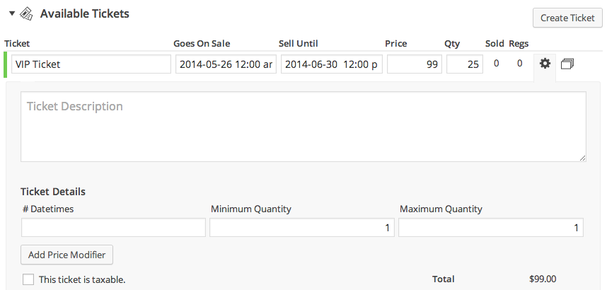 In the first part of this tutorial, we’ll create a ticket that has a minimum and maximum quantity and in the second part we’ll setup a code snippet of jQuery to handle removing the 0 value. Once both of these are in place, then the ticket selector will default to a value of 1.
