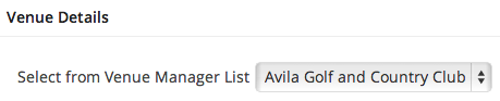 Locate Event Espresso in the WordPress admin menu and then click on Events. Then click on the Add New Event button which appears at the top of the page. You will now be viewing the Event Editor. Begin by entering a title for your event such as Golf Tournament and then a description. You can then select your venue from the Venue Details area:
