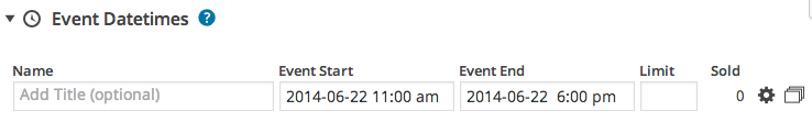 The next step is to setup our ticket options. For the first ticket, we need to enter a name, then select a start date and end date for ticket sales. The price should be set to $250. Then click on the advanced options (small gear). Then set the minimum and maximum quantity to 4. This will ensure that only a group of four tickets ($250 multiplied by 4 equals $1000) can be purchased for this specific ticket option.