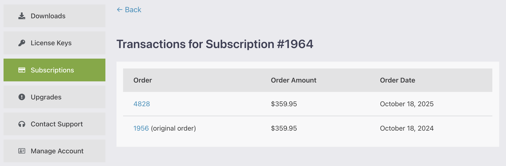 This section allows you to upgrade your license, for example, adding another site activation or purchasing additional add-ons.