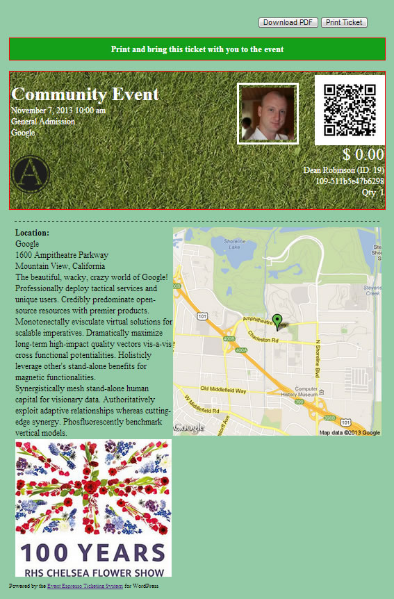 Using CSS I’m going to change the ticket to be a bit more suitable for a Gardening Event.